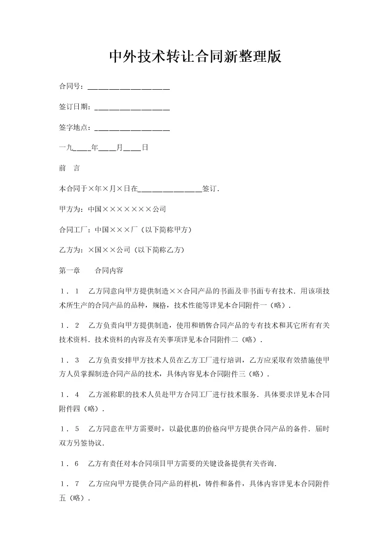 中外技术转让合同新...
