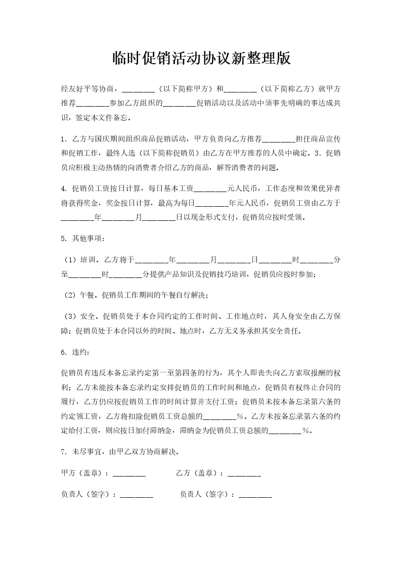 临时促销活动协议新...