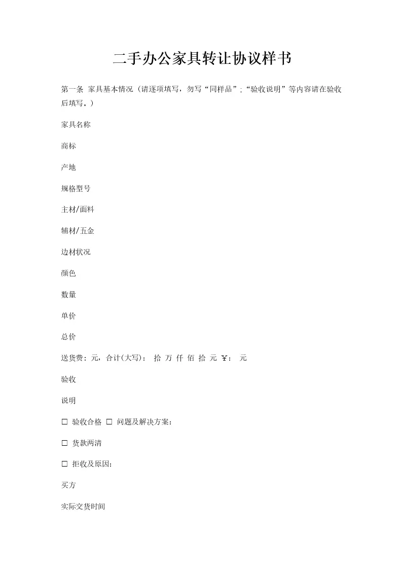 二手办公家具转让协...