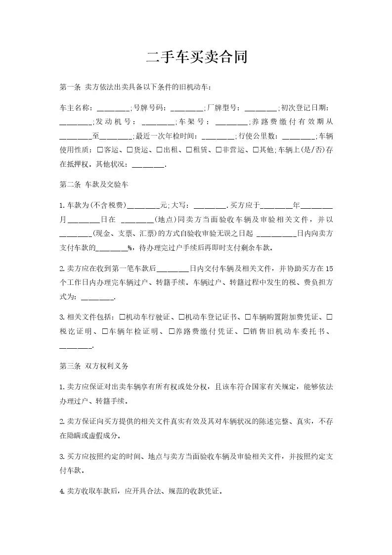 二手车买卖合同