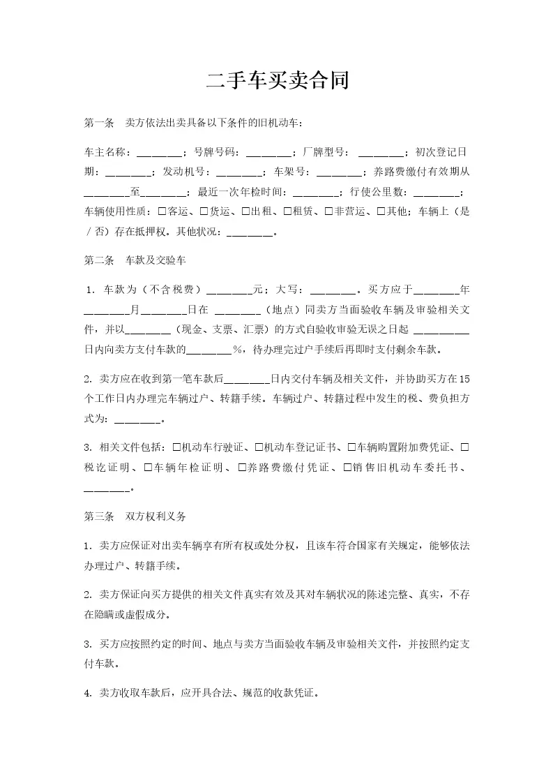 二手车买卖合同