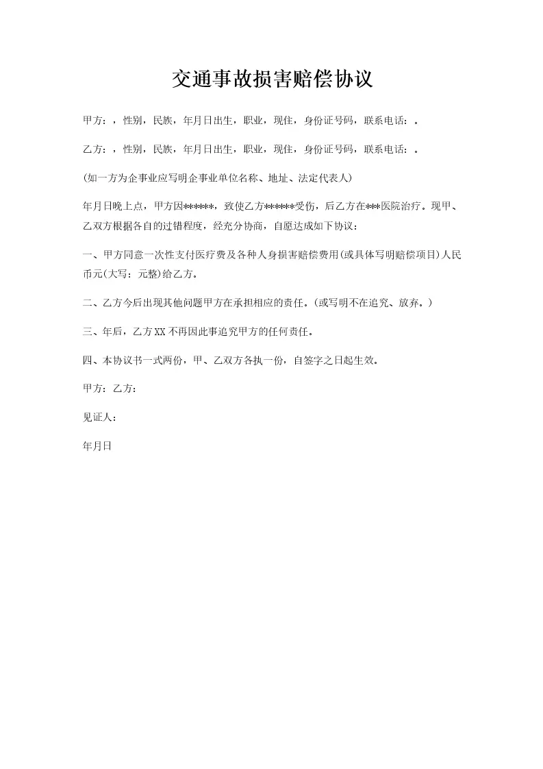交通事故损害赔偿协议