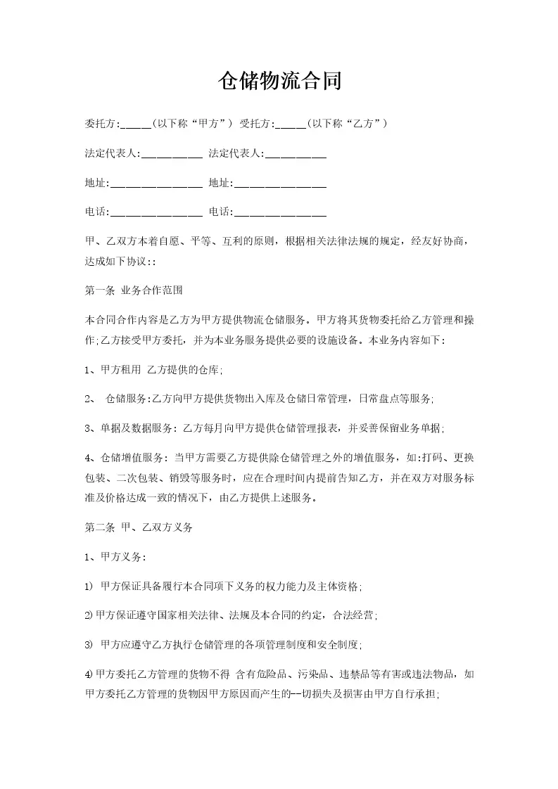 仓储物流合同