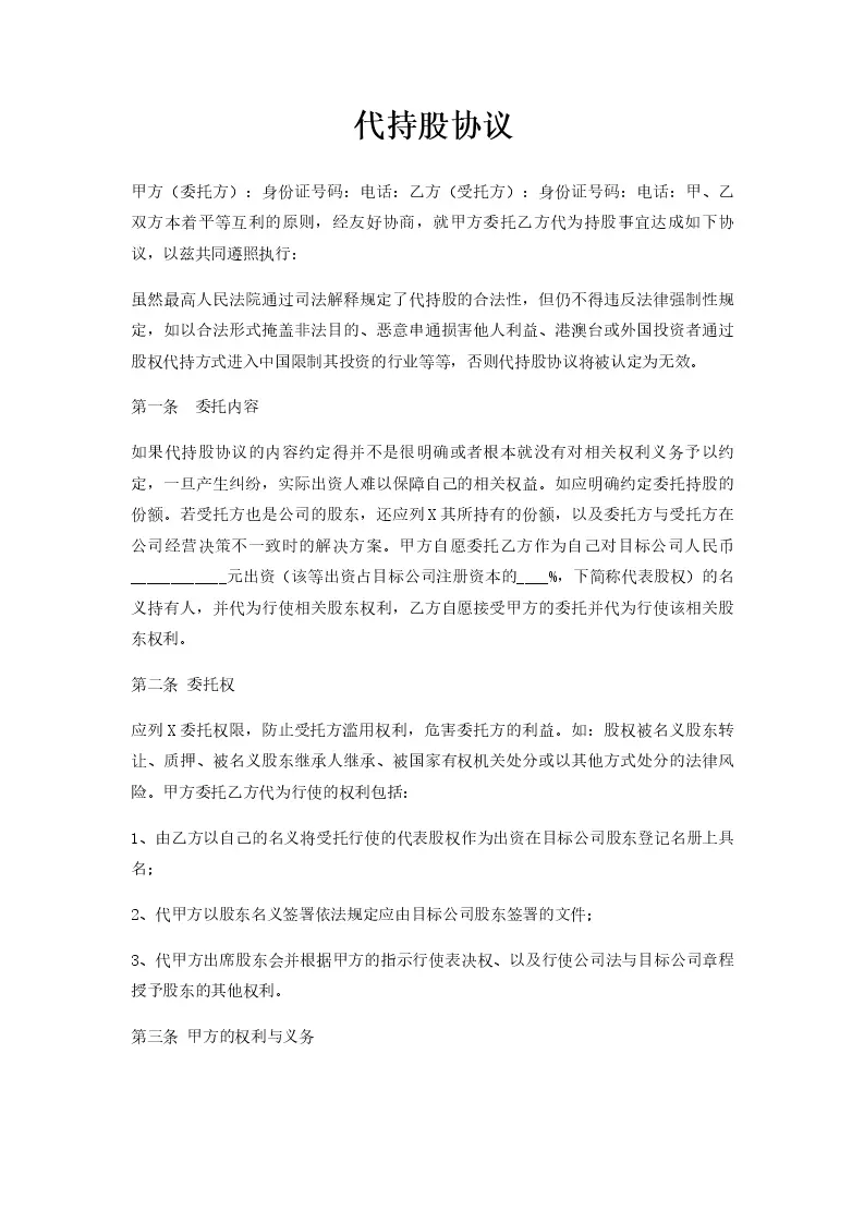 代持股协议