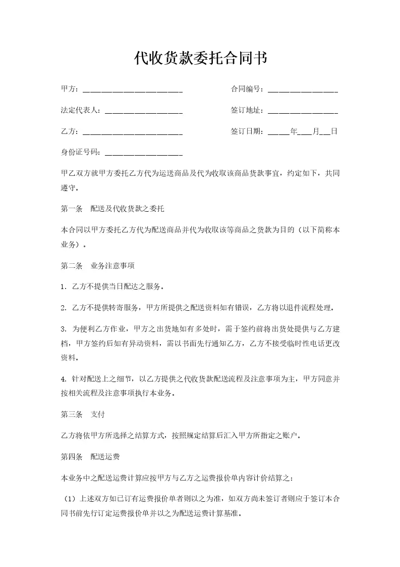 代收货款委托合同书
