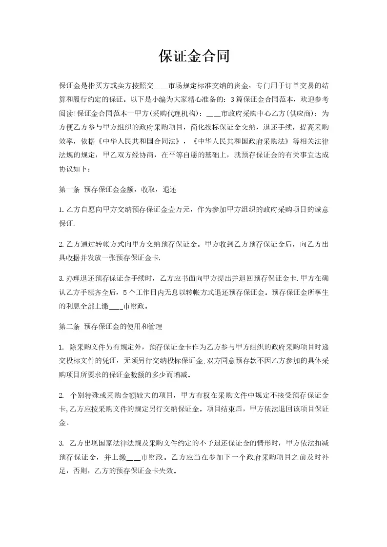 保证金合同
