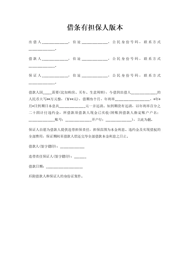 借条有担保人版本