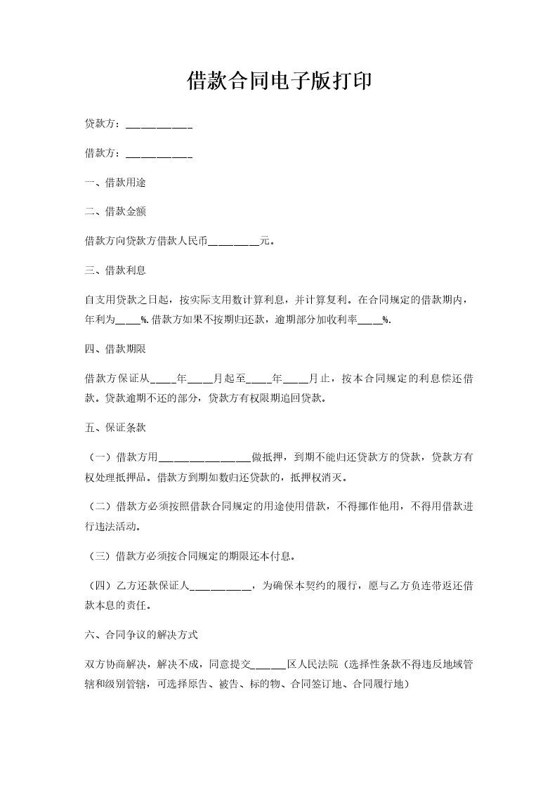 借款合同电子版打印