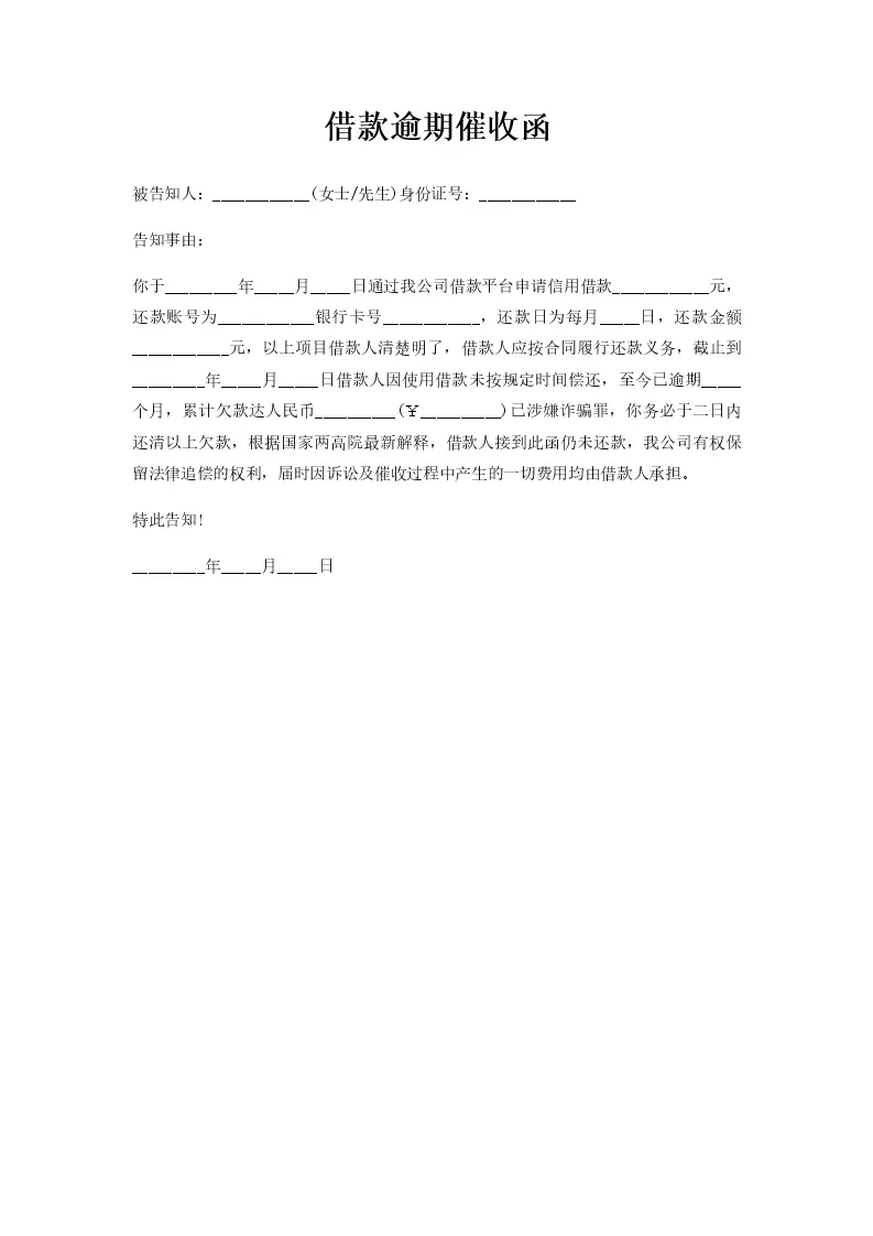 借款逾期催收函