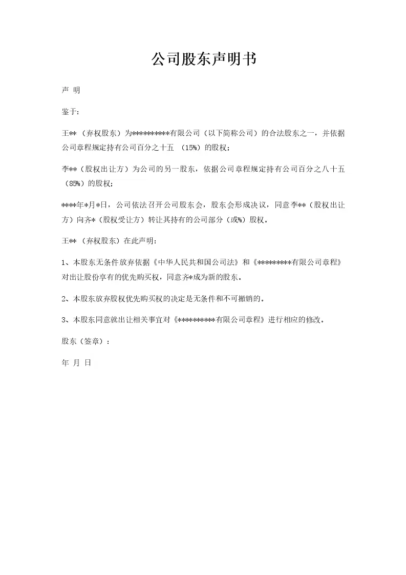 公司股东声明书
