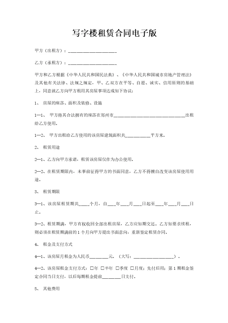 写字楼租赁合同电子版