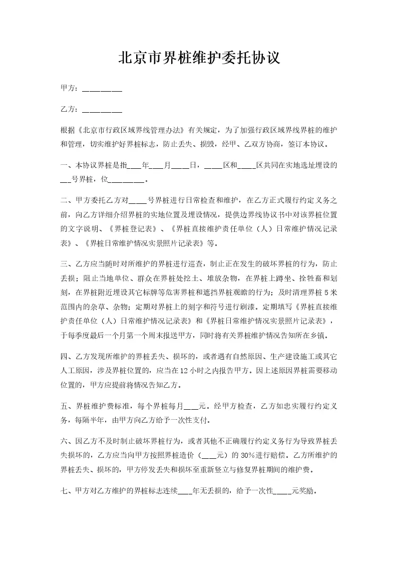 北京市界桩维护委托协议