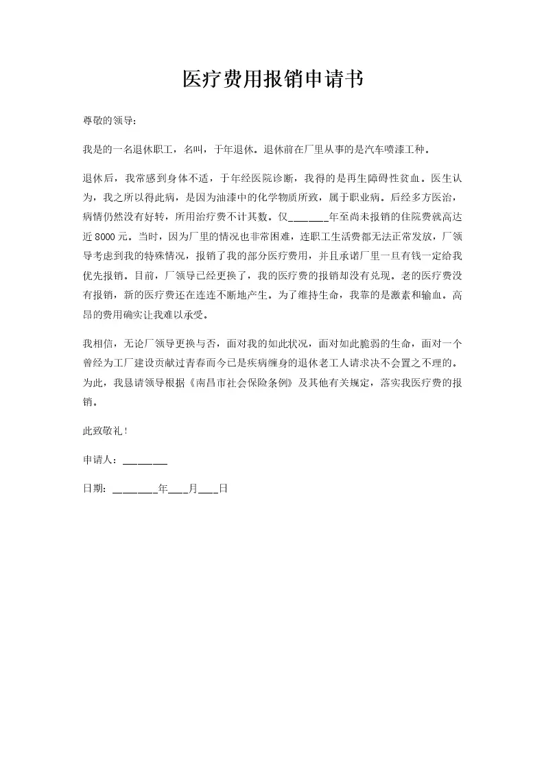医疗费用报销申请书