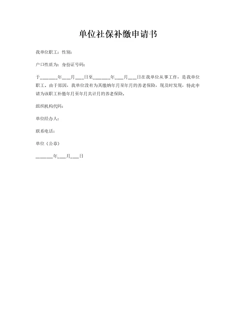 单位社保补缴申请书