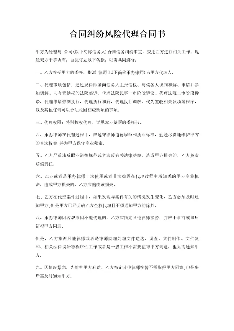 合同纠纷风险代理合...