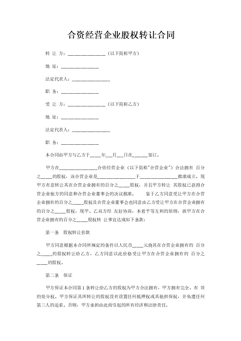 合资经营企业股权转让合同