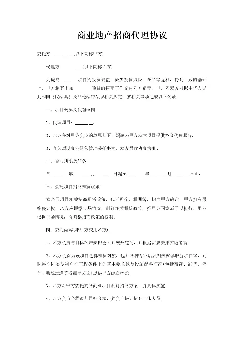 商业地产招商代理协议