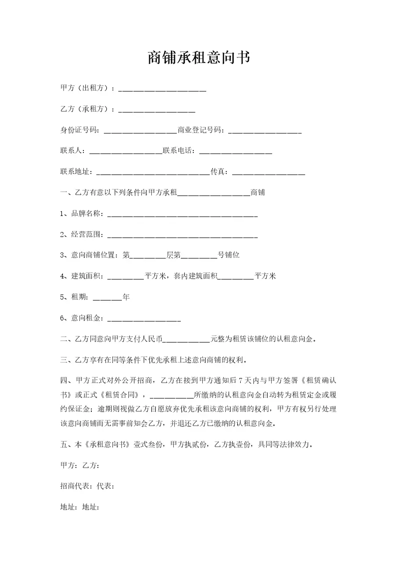 商铺承租意向书