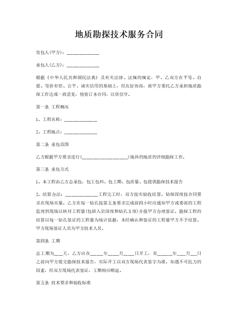 地质勘探技术服务合同