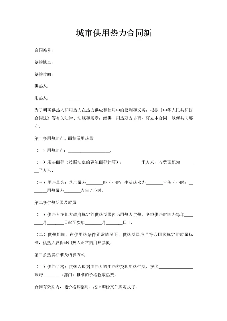 城市供用热力合同新