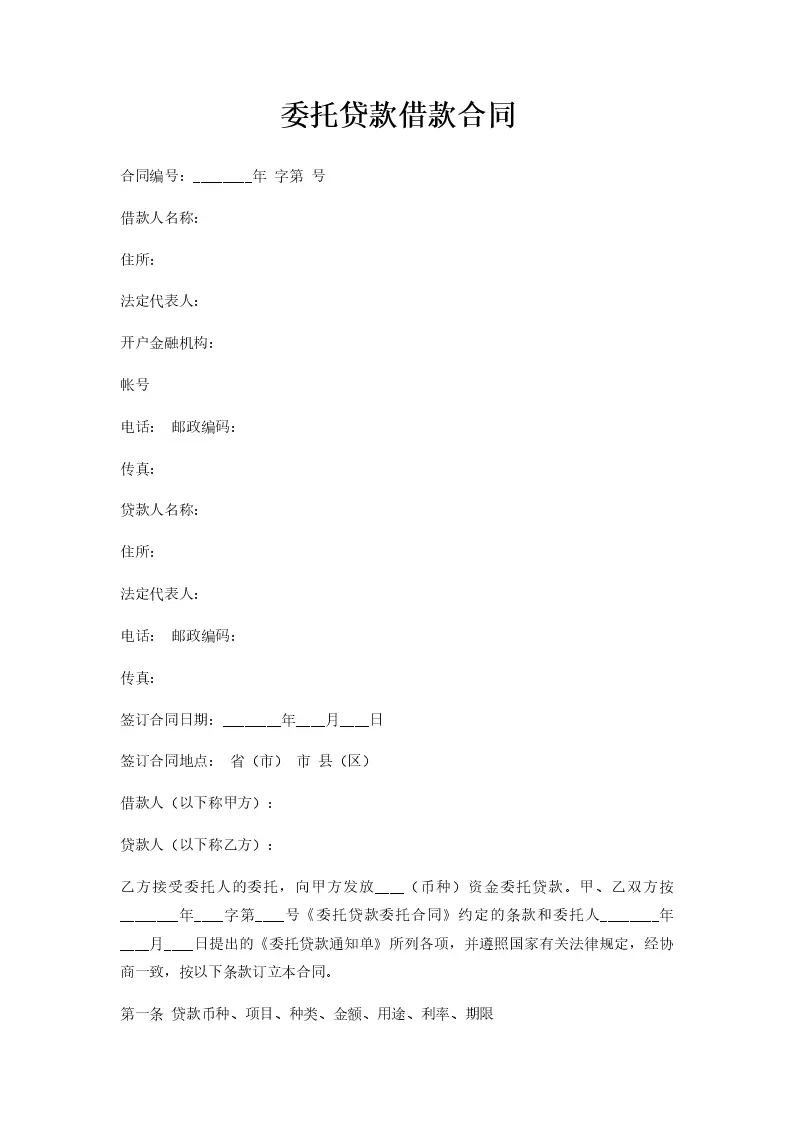 委托贷款借款合同