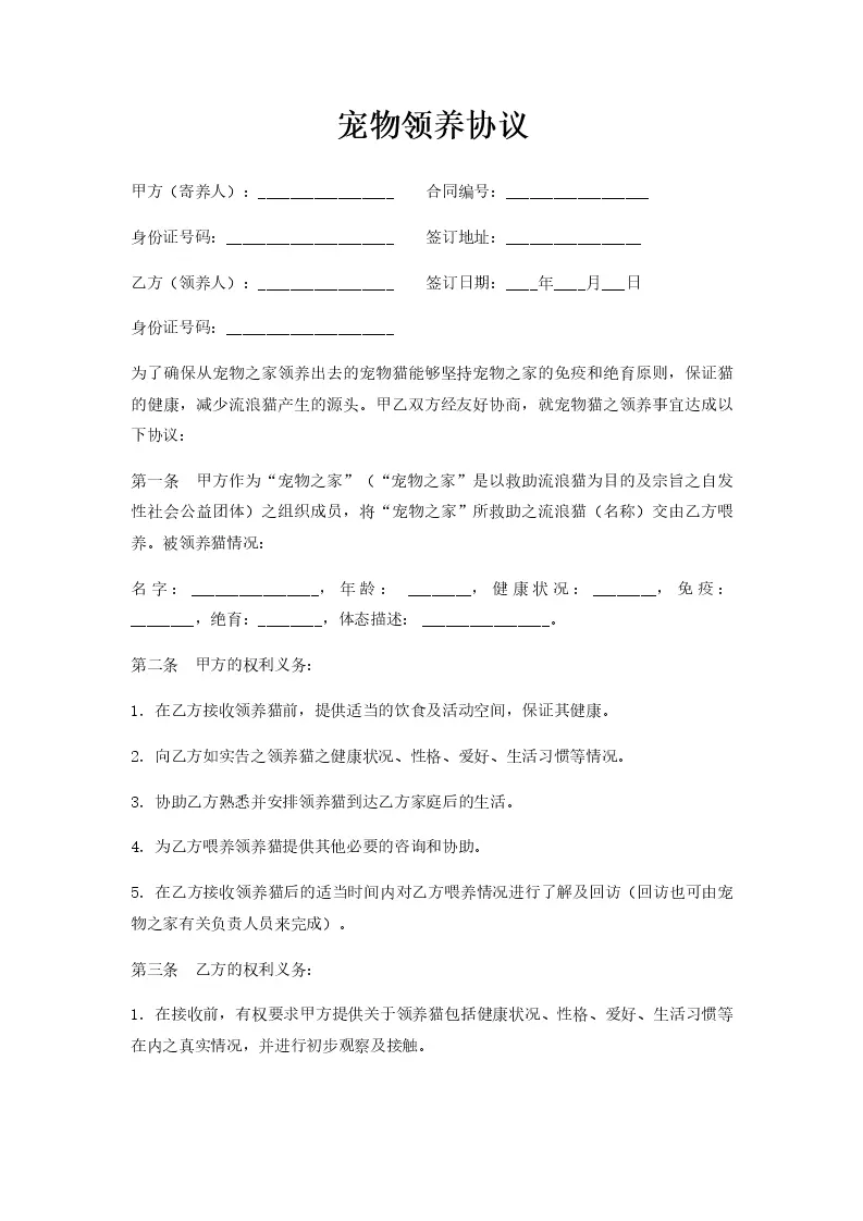 宠物领养协议
