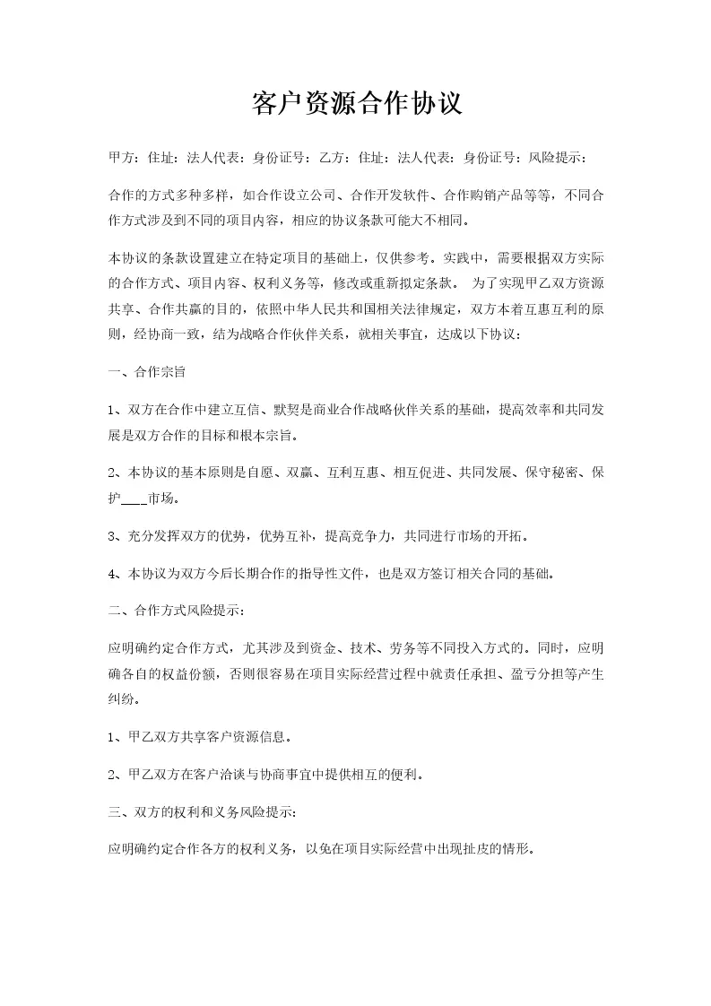 客户资源合作协议