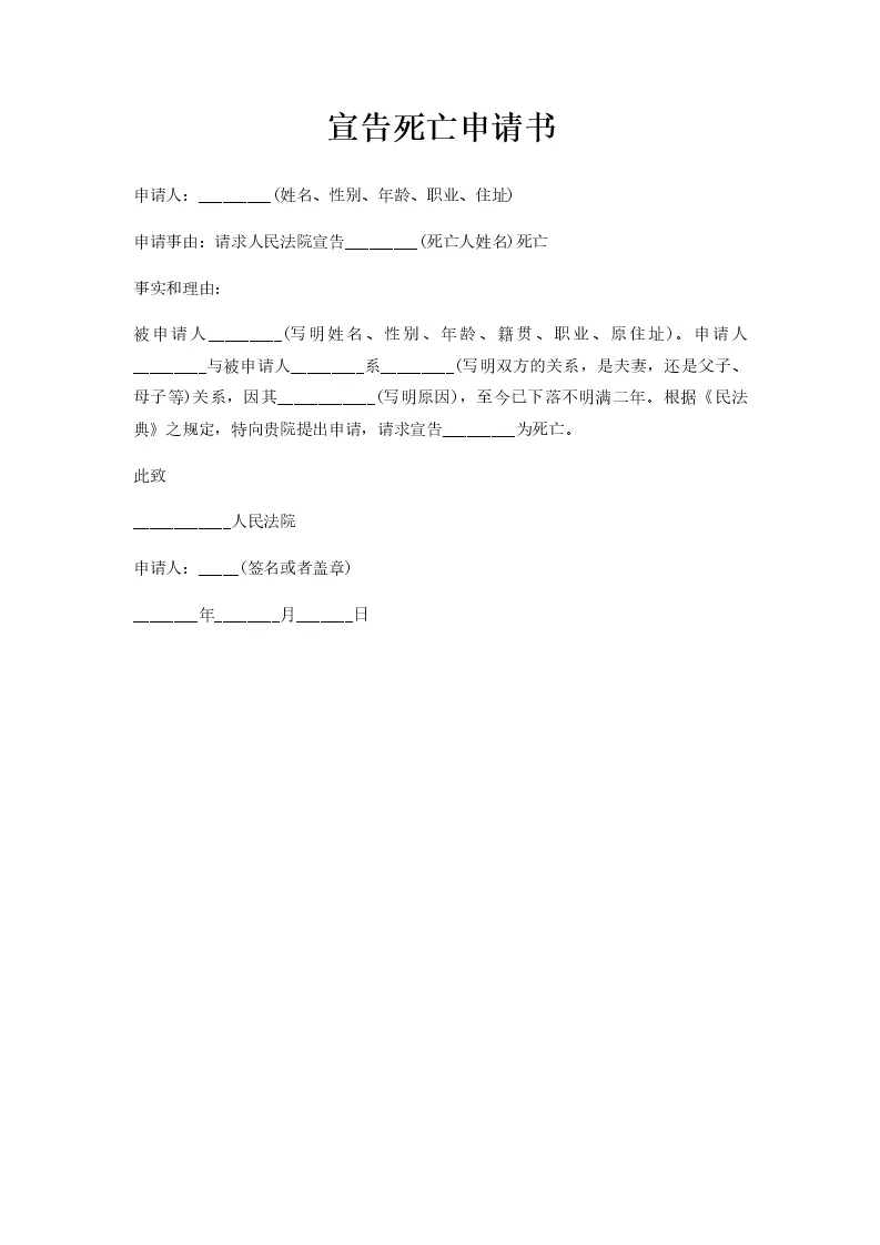 宣告死亡申请书