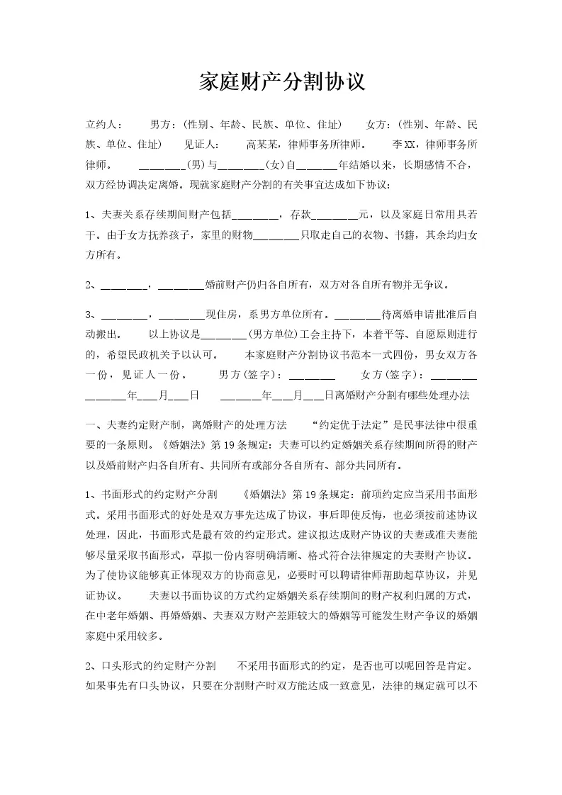 家庭财产分割协议
