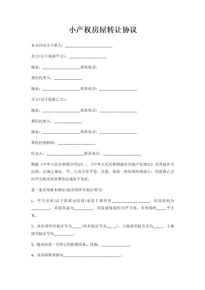 小产权房屋转让协议