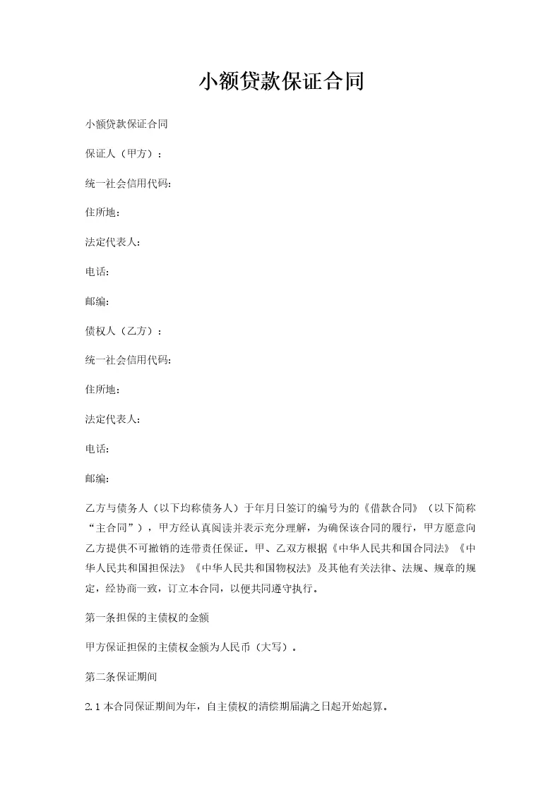 小额贷款保证合同