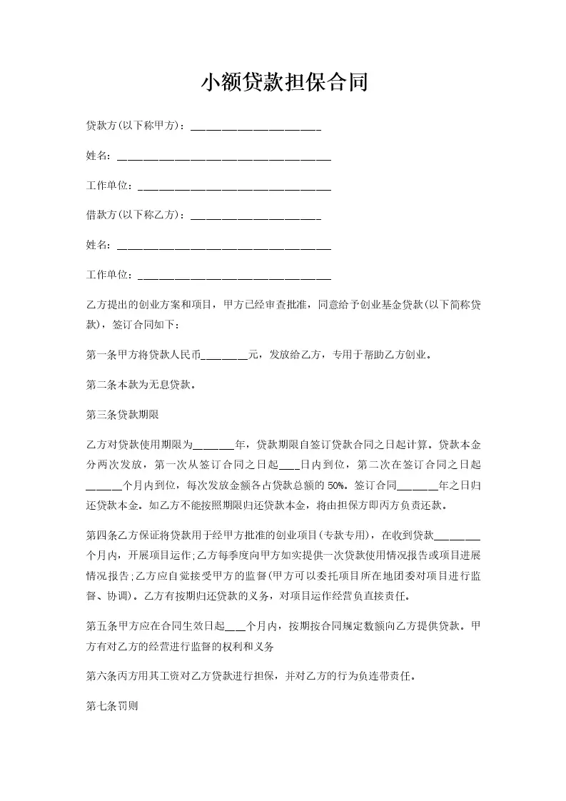 小额贷款担保合同