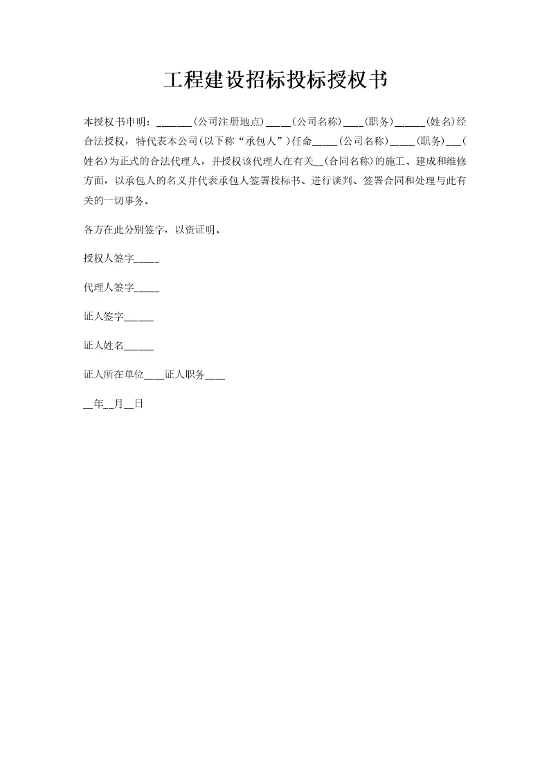 工程建设招标投标授权书