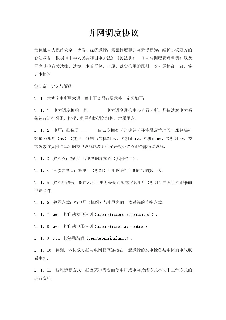 并网调度协议