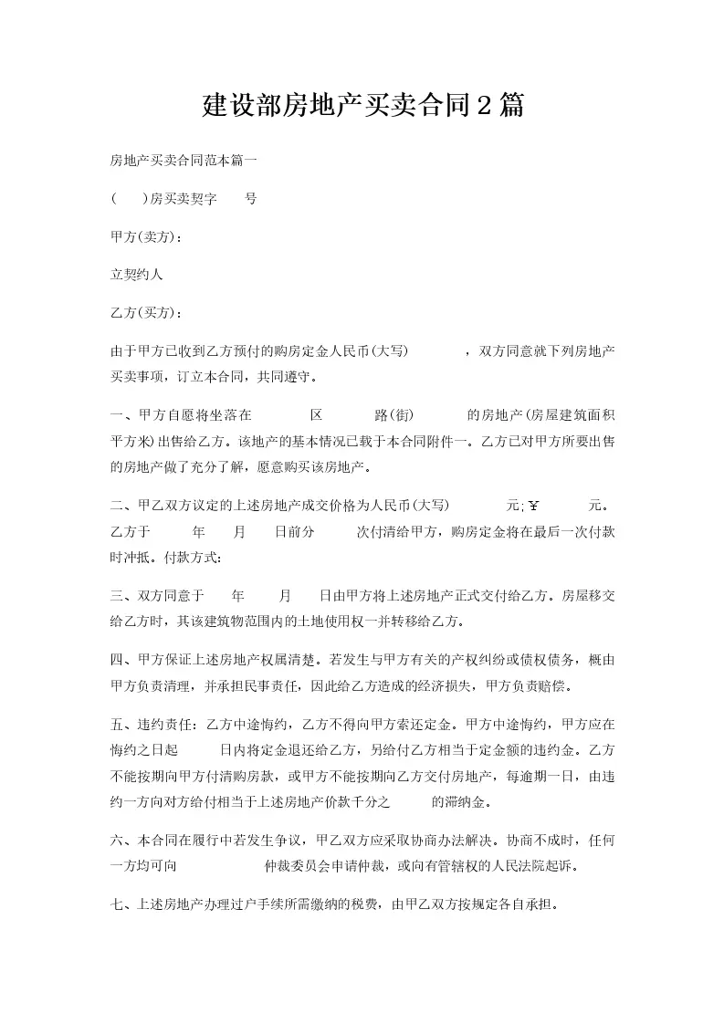 建设部房地产买卖合同2篇