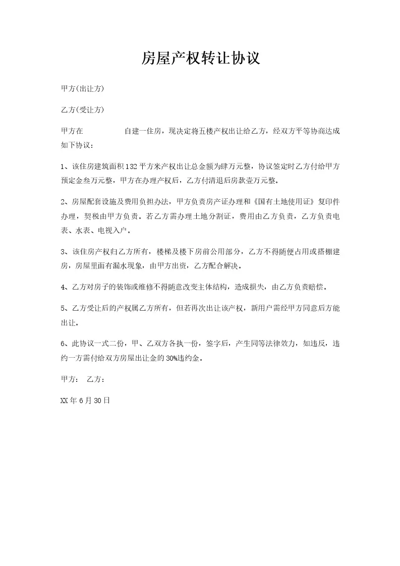 房屋产权转让协议