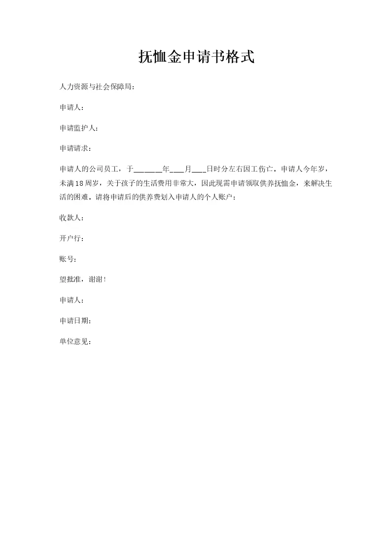 抚恤金申请书格式
