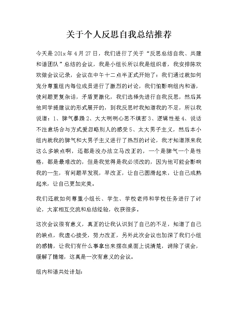 关于个人反思自我总结推荐