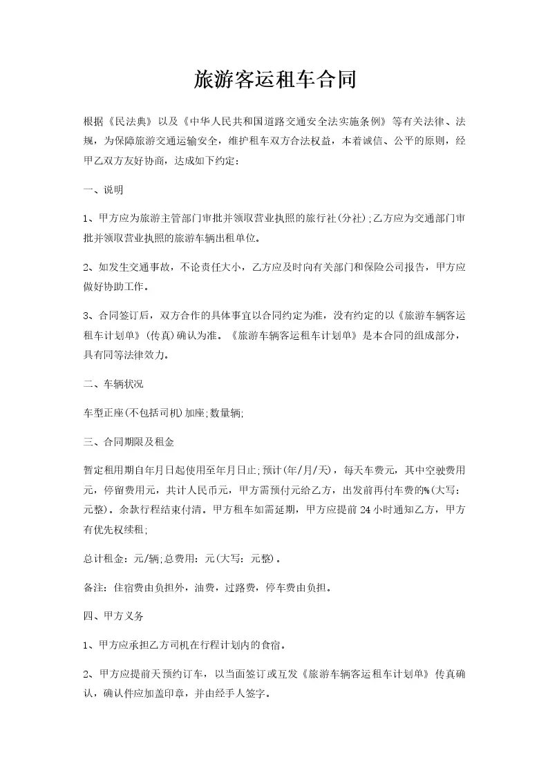 旅游客运租车合同