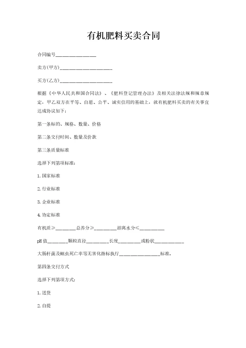 有机肥料买卖合同