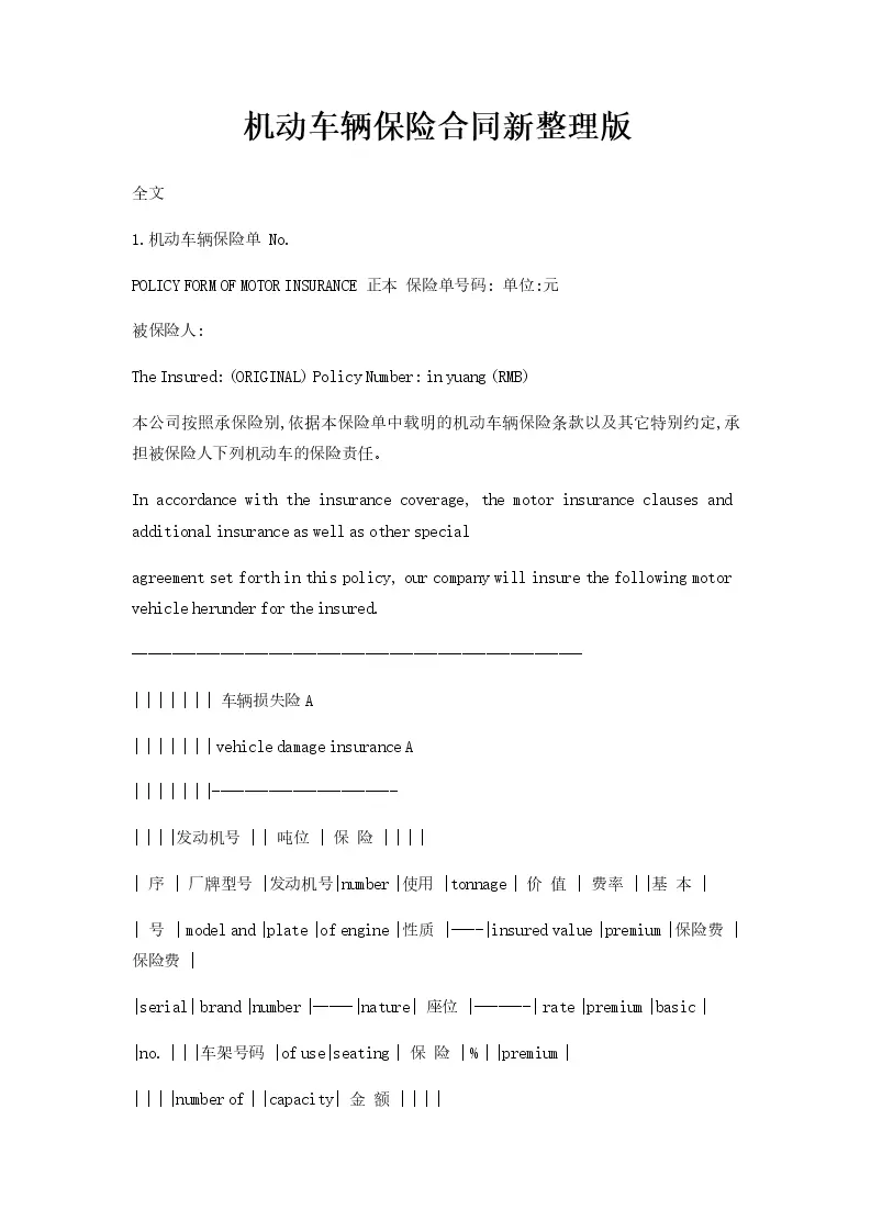 机动车辆保险合同新...
