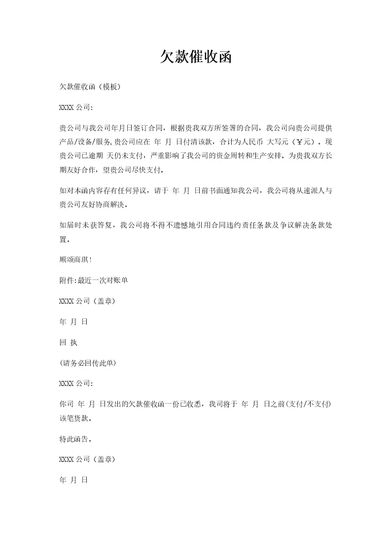欠款催收函