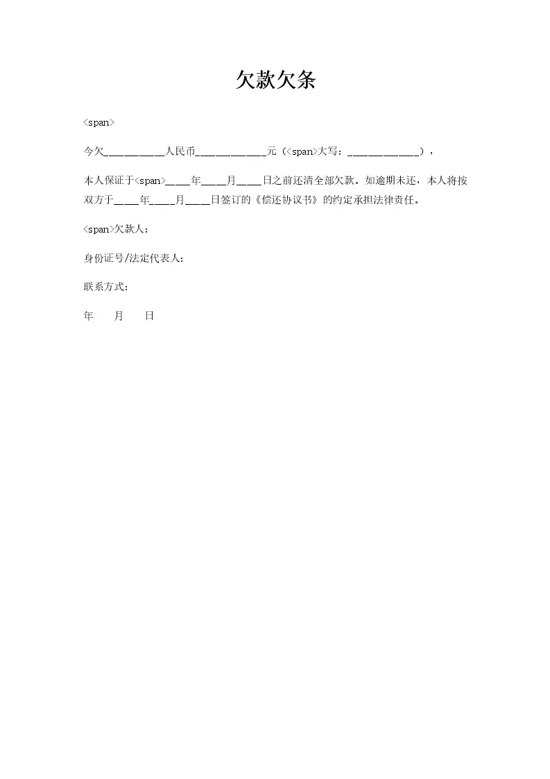 欠款欠条