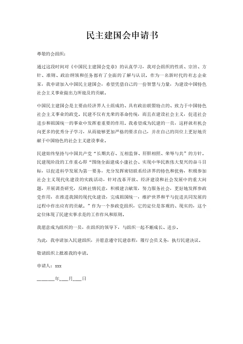 民主建国会申请书