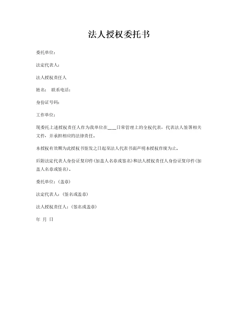 法人授权委托书