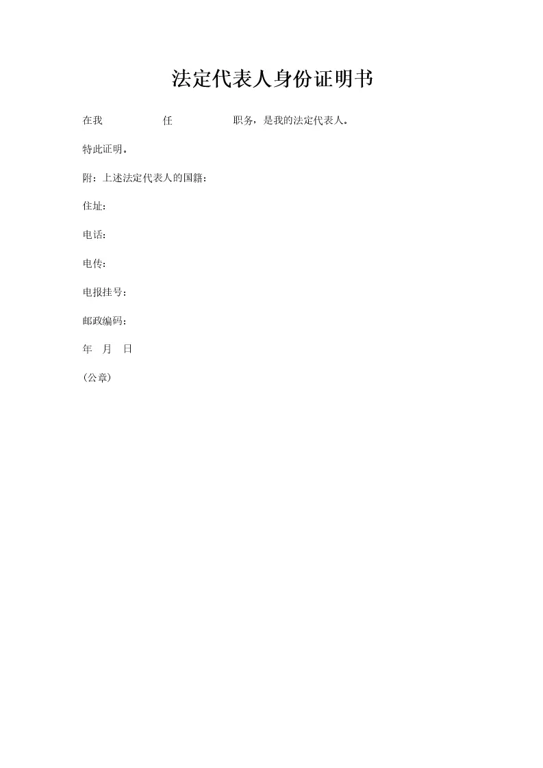 法定代表人身份证明书
