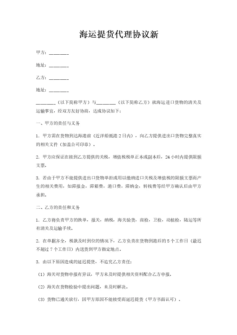 海运提货代理协议新