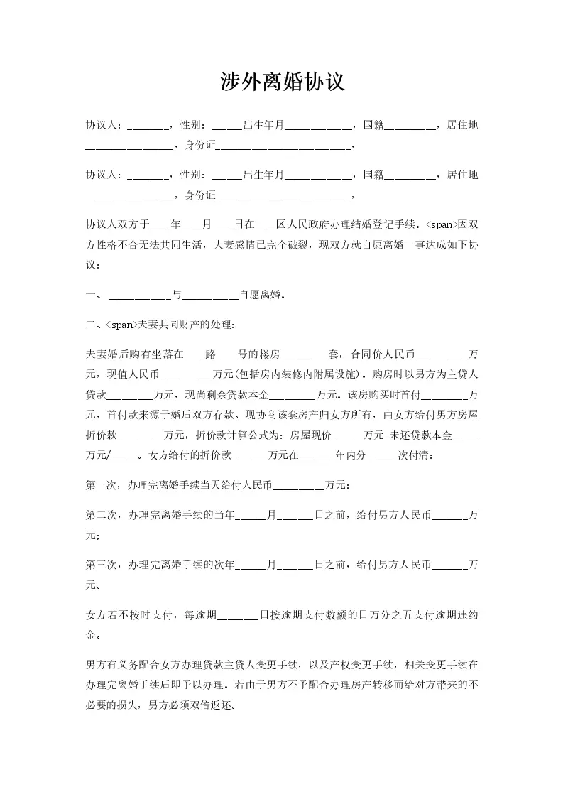 涉外离婚协议