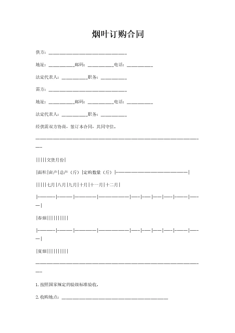 烟叶订购合同