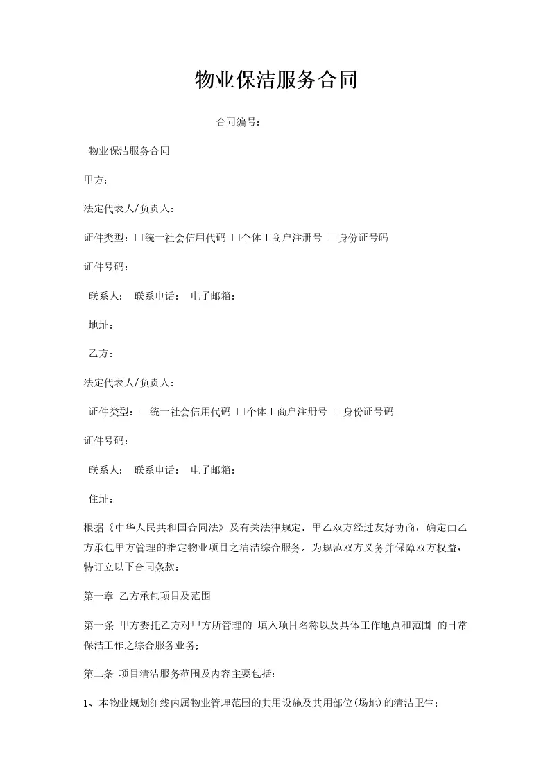 物业保洁服务合同